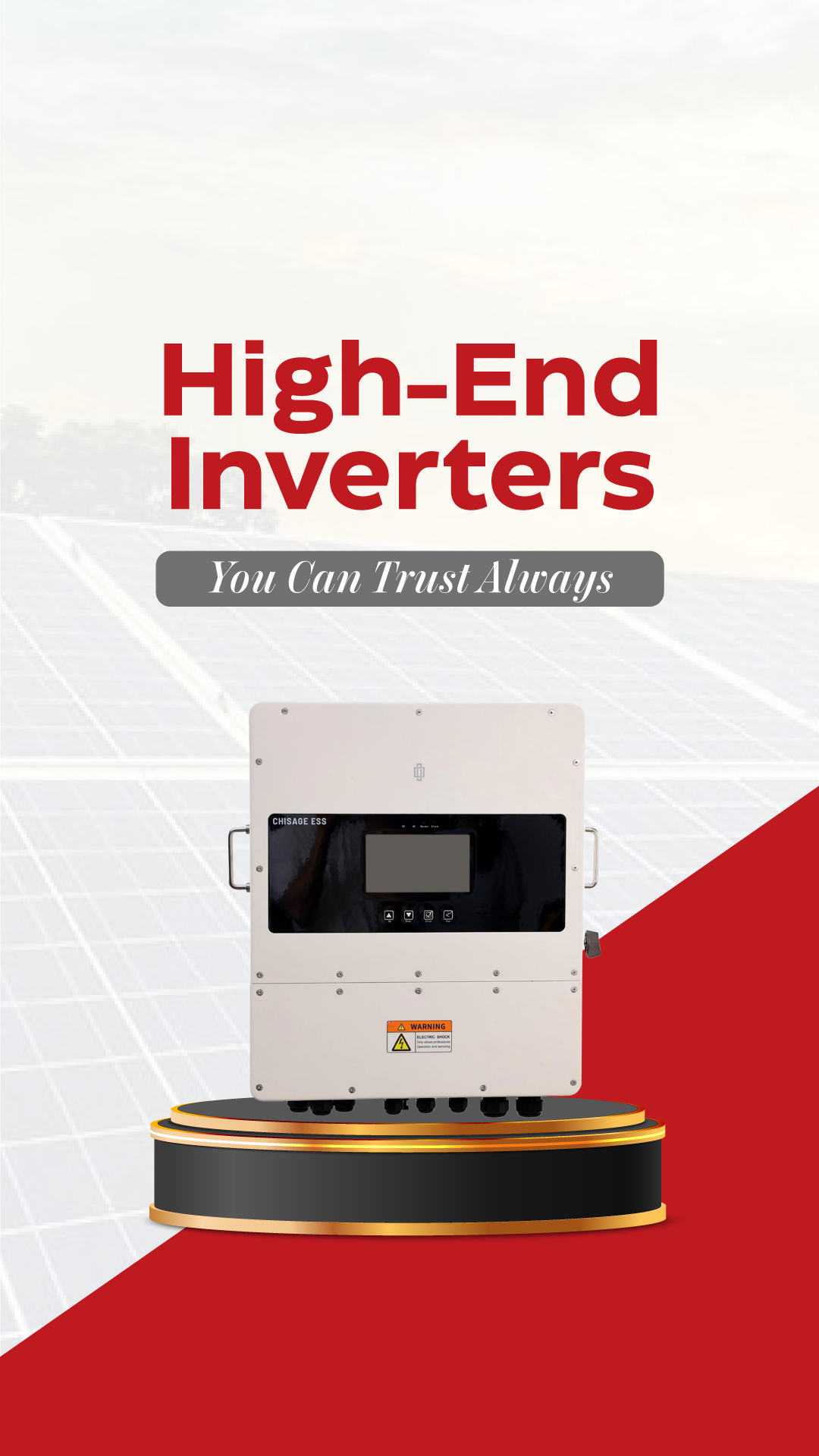 Chisage ESS inverters are built with advanced hybrid technology that intelligently manages solar, grid, and battery power for continuous energy supply. They feature high conversion efficiency (up to 97.9%), IP65 protection, and are backed by over 25 years of global engineering experience, making them ideal for Nigeria’s energy environment.